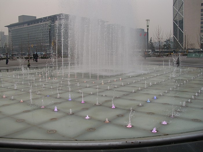 בריכה מעגלית בשילוב מזרקות מים מוזיקליות ותאורות מים Xidan Public Square, פקין, סין