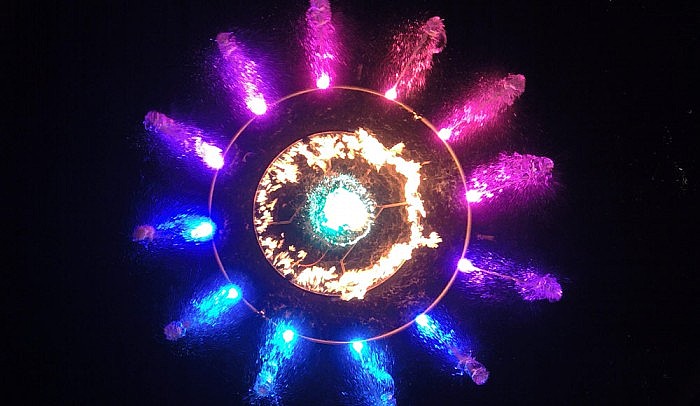 מזרקה מוזיקלית עם להבות אש בקניון היוקרתי ביותר במקסיקו.